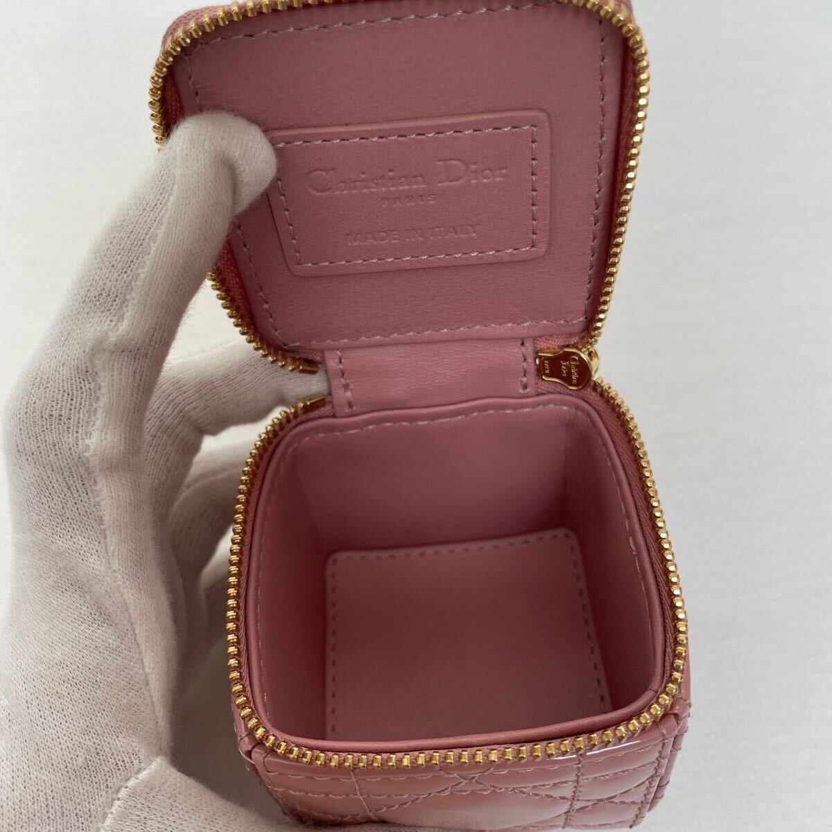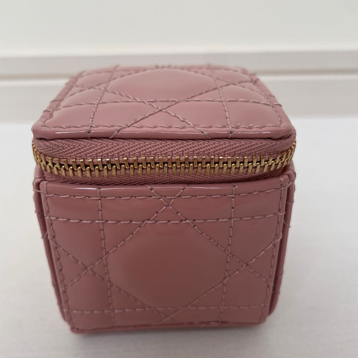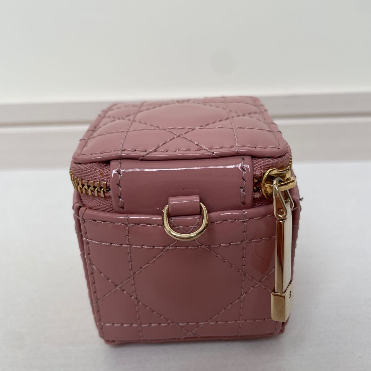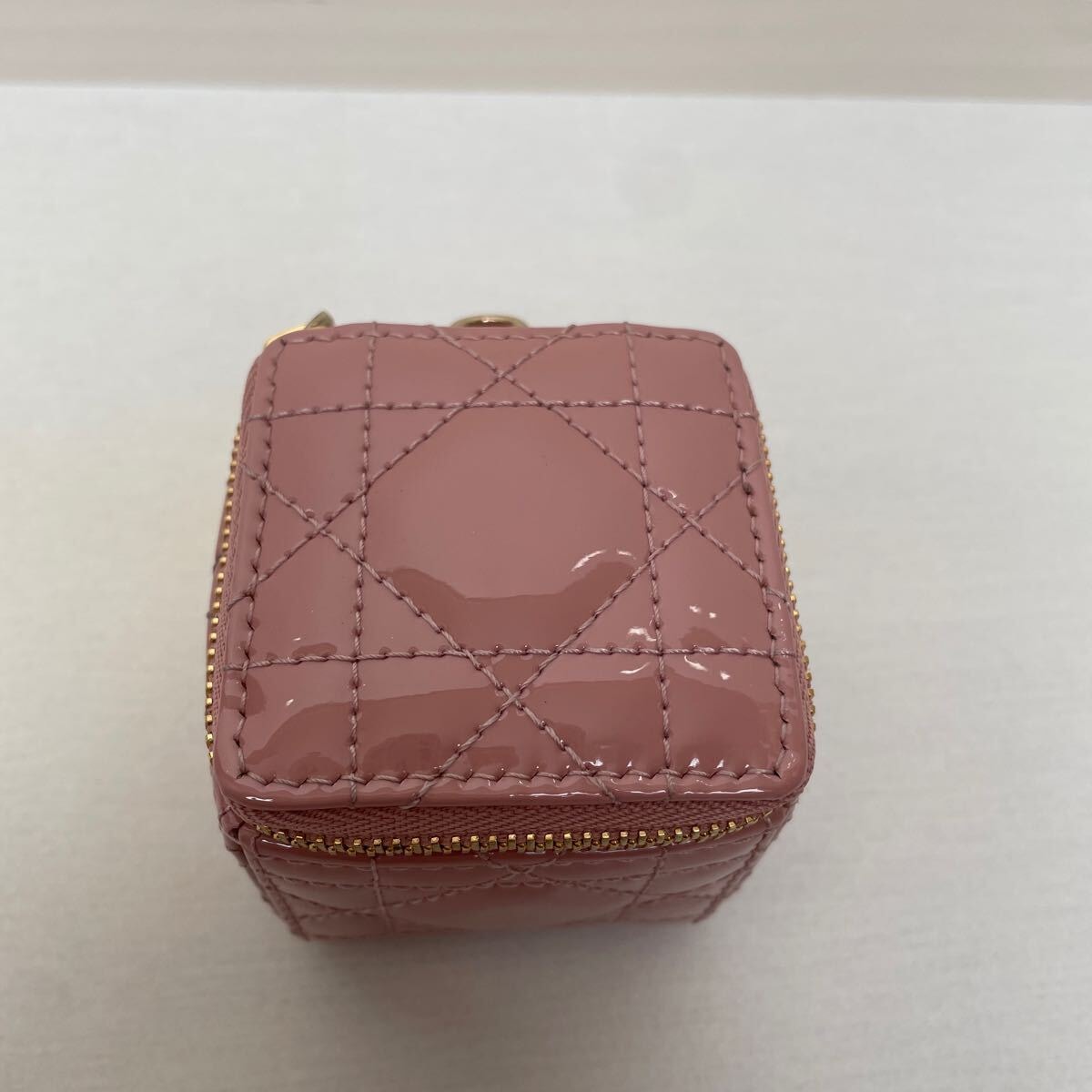 美品【ディオール】レア 希少 ディオール Lady Dior チェーン キューブ マイクロポーチ パティントカーフスキン カナージュ ピンク ダスティピンク LADY DIOR レディディオール DIOR Dior クリスチャンディオール Christian Dior コインケース 小銭入れ ポーチ 小物入れ