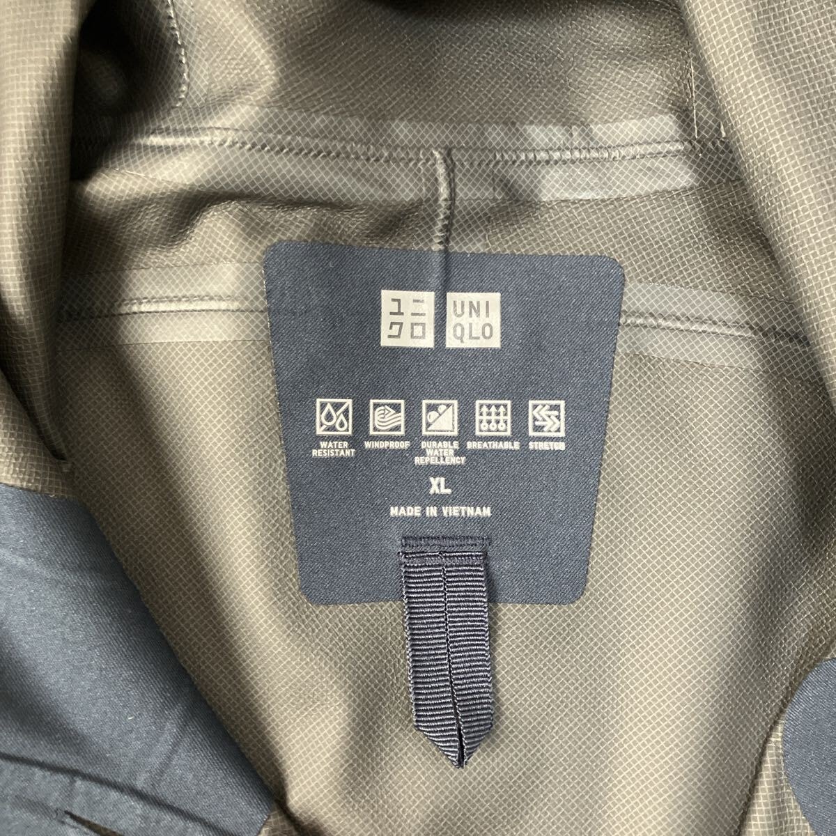 防水性と通気性を兼ね備えたネイビーのナイロンジャケット、XLサイズ。- ブランド: UNIQLO- サイズ: XL- 色: ネイビー- 素材: ナイロンご覧いただきありがとうございます。