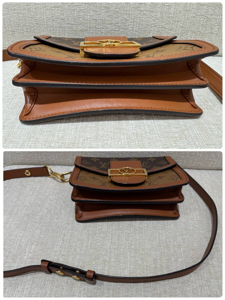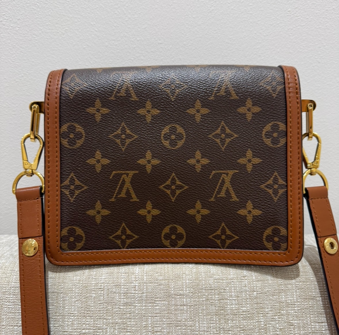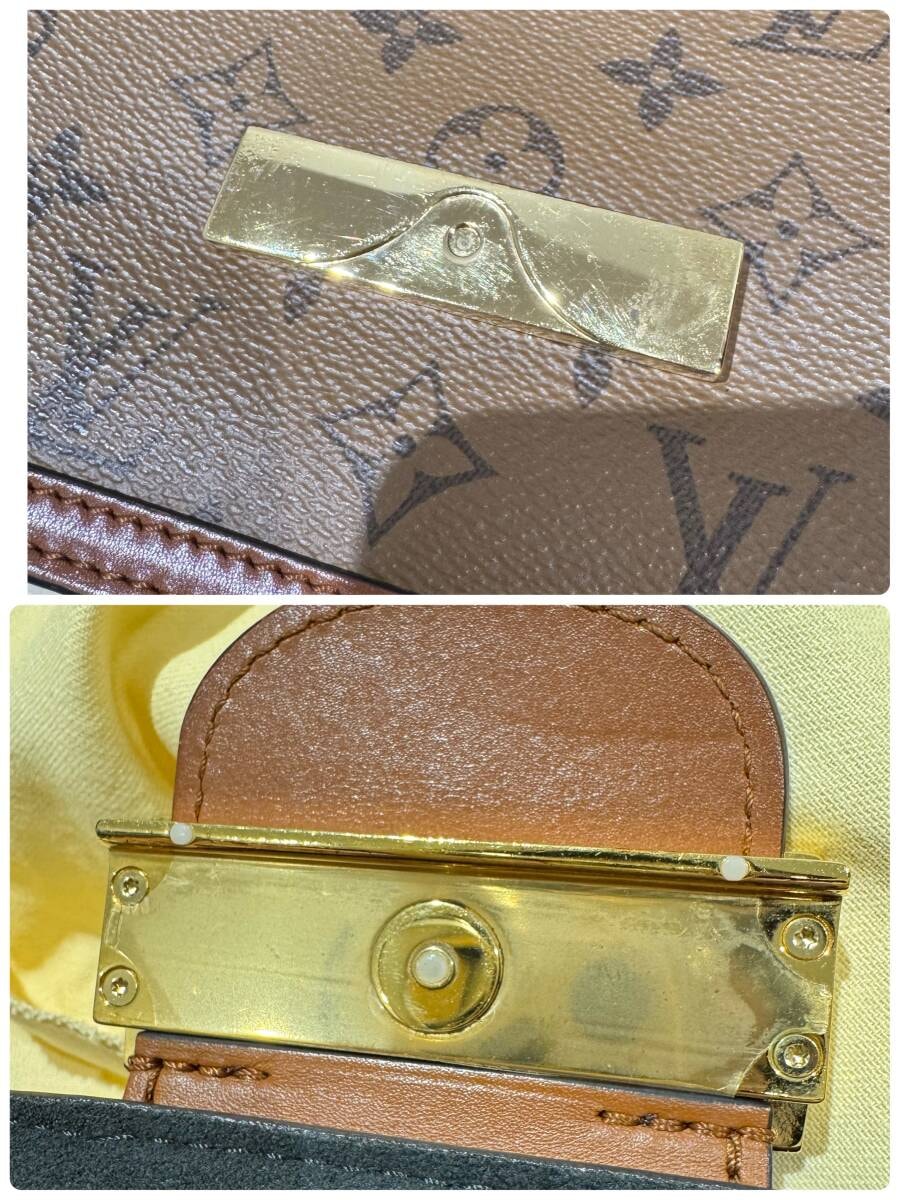 【ブランド】Louis Vuitton ルイヴィトン【商品名】ドーフィーヌ MINI ミニ【型番】M45959 M44580【シリアル】ICチップ・RFID 正規反応あり(写真10枚目) FO1149【素材/カラー】モノグラム&モノグラム・リバースキャンバス/ブラウン【サイズ】約 W19.5㎝ × H14.5㎝ × D9.5㎝【仕様】ゴールド金具、フロントにLVモチーフマグネット式ロック、内側コンパートメント×2、内側側面にフラットポケット【状態】フロントLV金具メッキ角剥げ・擦れ傷、小傷、ストラップコバ剥げ、キズ、角スレ、あります。写真をご参照ください。