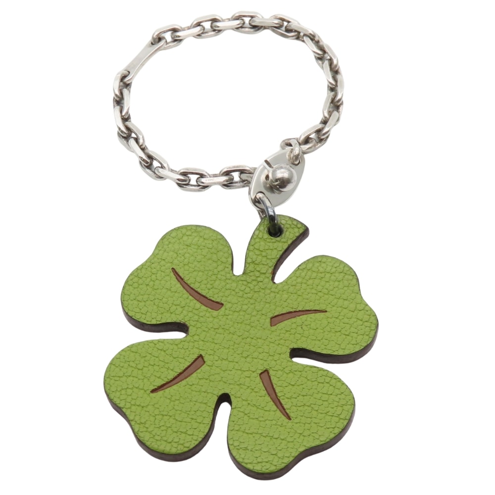 品名:【中古】 エルメス バッグチャーム クローバー レザー シルバー925 グリーン オレンジ アクセサリー 小物 キーホルダー レディース 女性 HERMES