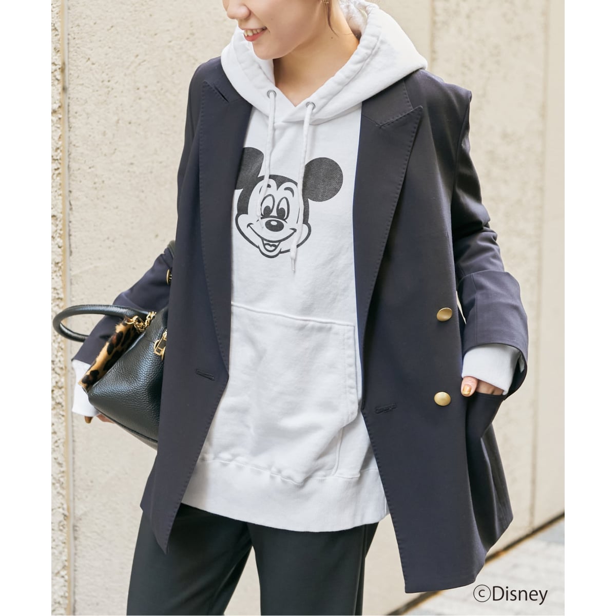 レトロな「ミッキー」のプリントがポイントのフーディ。