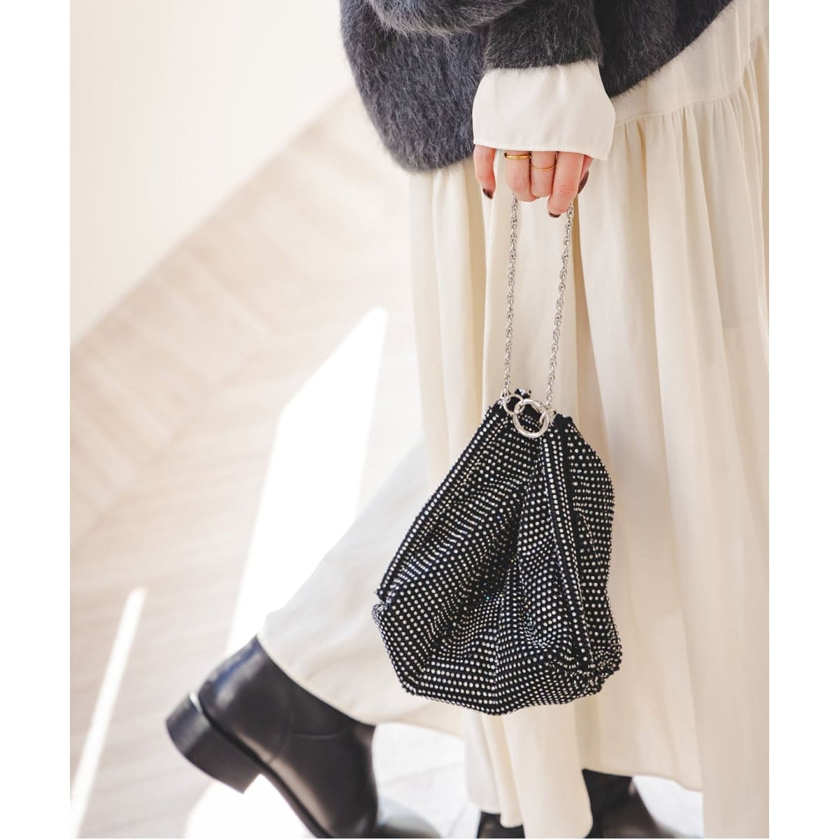 キラキラしたストーンで彩られたシーズンムードたっぷりのハンドバッグ。