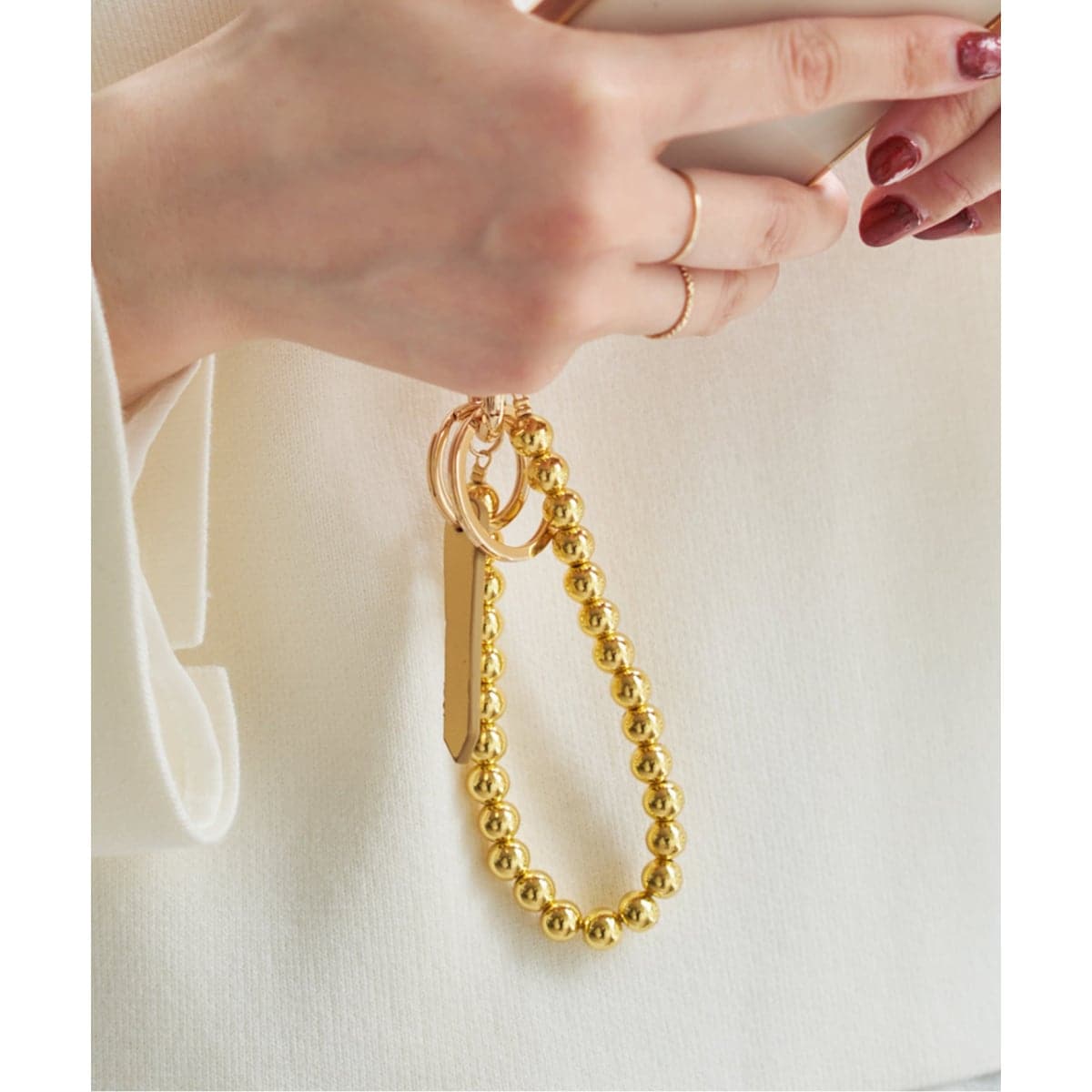 スマホアクセサリーとしてはもちろん、バッグチャームとして付けたり、ボトムスのベルトループに付けてもこなれた雰囲気に。