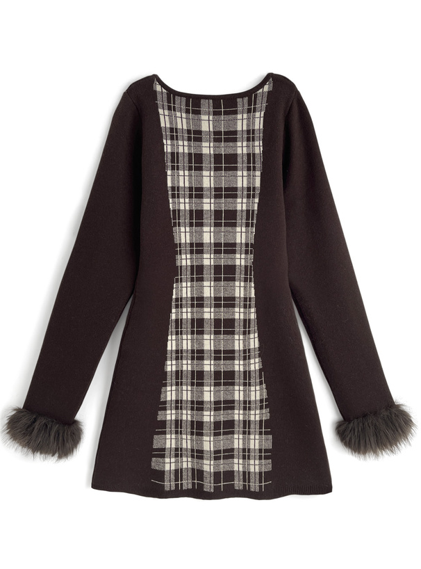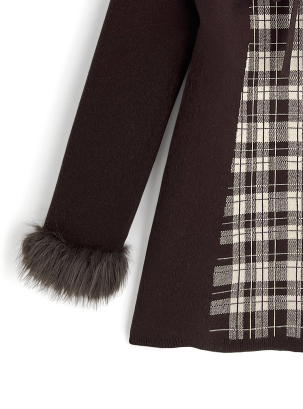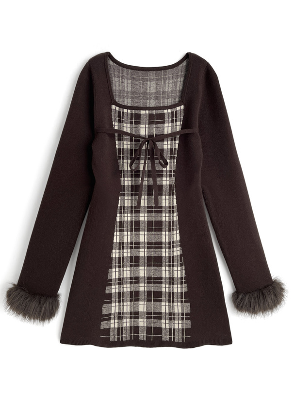 チェック柄ファードッキングノースリーブニットワンピース[lt160]
