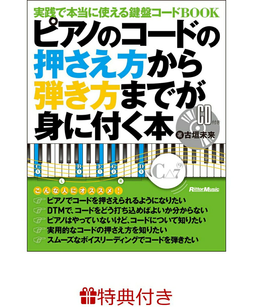 本書は特に、以下のような方々にお薦めです。◯ピアノでコードを押さえられるようになりたい◯DTMで、コードをどう打ち込めばよいか分からない◯ピアノはやっていないけど、コードについて知りたい◯実用的なコードの押さえ方を知りたい◯スムーズなボイスリーディングでコードを弾きたいというわけで、鍵盤でのコードの押さえ方を、さまざまなバリエーション込みで紹介しているのが、まずは本書の大きな特徴。例えば一番簡単なCメジャー(ド・ミ・ソ)でも、計19種類もの押さえ方を掲載しています。これにより、曲調やメロディに合わせて、スムーズなコードの連結を考えられるようになります。また、コード進行によるエクササイズを多数用意しているのも、本書ならではの特徴です。特にPART1では基本コードをマスターするために、コードタイプごとにエクササイズを設置。実践的な使用法を体得できます。さらにPART3では8ビート、ジャズ、ボサノバ、バラードなどのジャンルを想定したバッキング・パターンもご紹介、実際の"弾き方"も覚えることができます。まさに"押さえ方"から"弾き方"までが、身に付く本なのです。