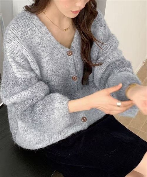 ˖ ࣪⊹グレイル F Vネックニットカーディガン オーバーシルエット