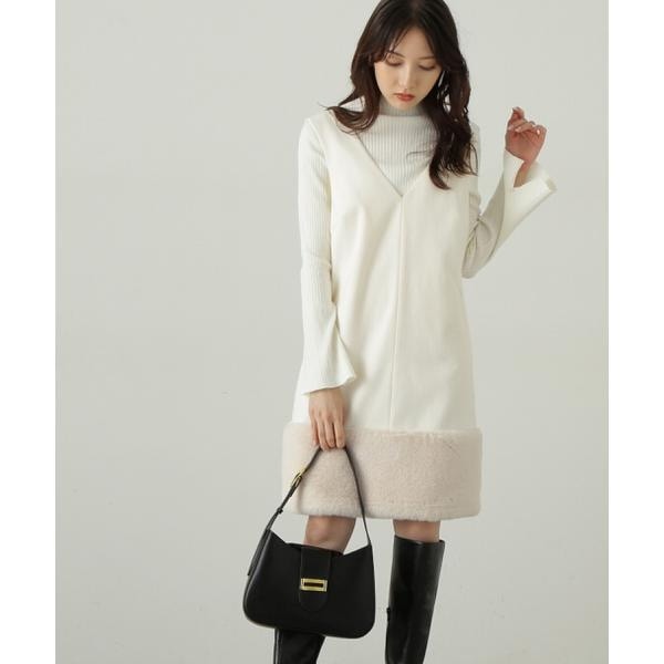 裾まわりにフェイクファーをあしらったAラインのミニ丈ジャンスカ。インナーにシアー素材のトップスやブラウスを合わせれば、今年らしいコーディネートが完成。ミニ丈なので、足元はロングブーツを履くと秋冬らしさを演出してくれます。<素材>フェイクファーと、ウォーム感のある素材を使用しています。<詳細>仕様・後ろファスナー裏地・あり透け感・なし / 光沢・なし / 伸縮性・なし 生地の厚さ・普通※モデルの着用画像の場合、光の当たり具合により、実際の色味と異なって見えることがございます。色味は、商品単体の画像をご参照ください。