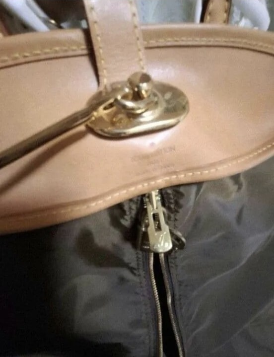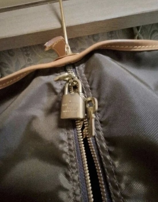 モノグラム生地には汚れ等なく、綺麗な状態です。フックや鍵付きでお出かけ時に便利です。ハンガーもあります。
