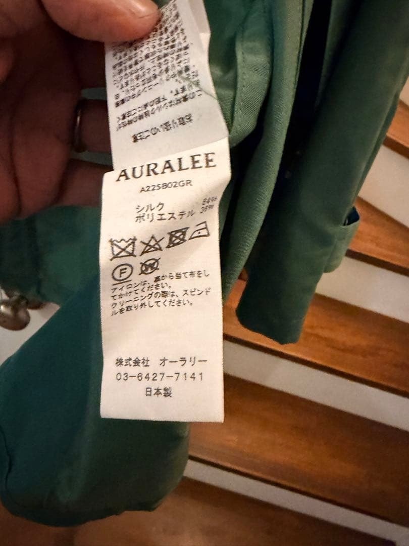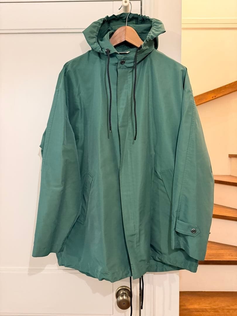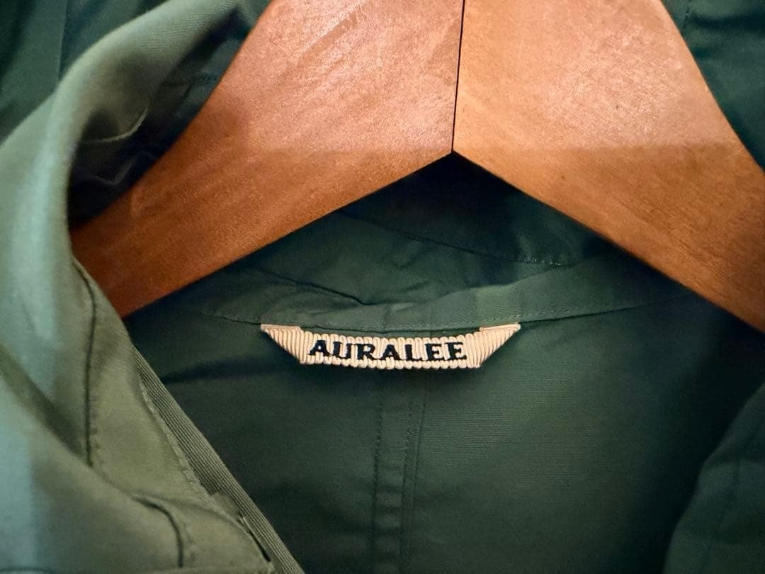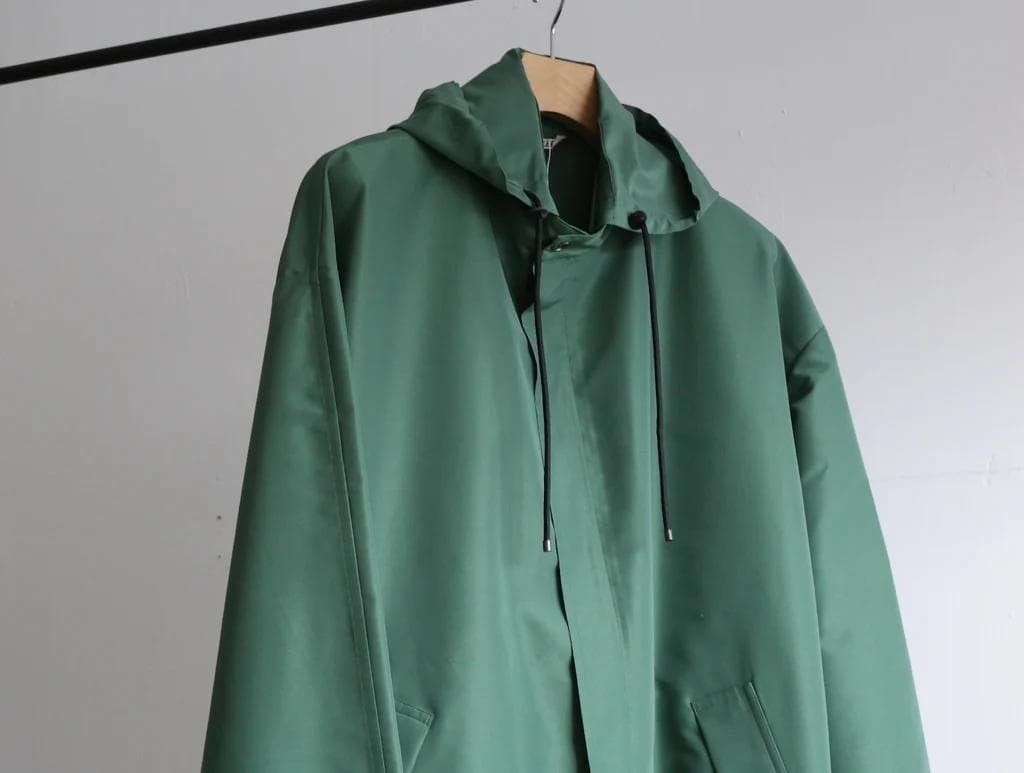 AURALEE SILK POLYESTER GROSGRAIN HOODED BLOUSONPrice. 77,000- (tax in)Col. GREENSize. 3(着丈80.5cm、身幅74cm、肩幅60cm、袖丈55cm)Material. SILK 64% POLYESTER 36%