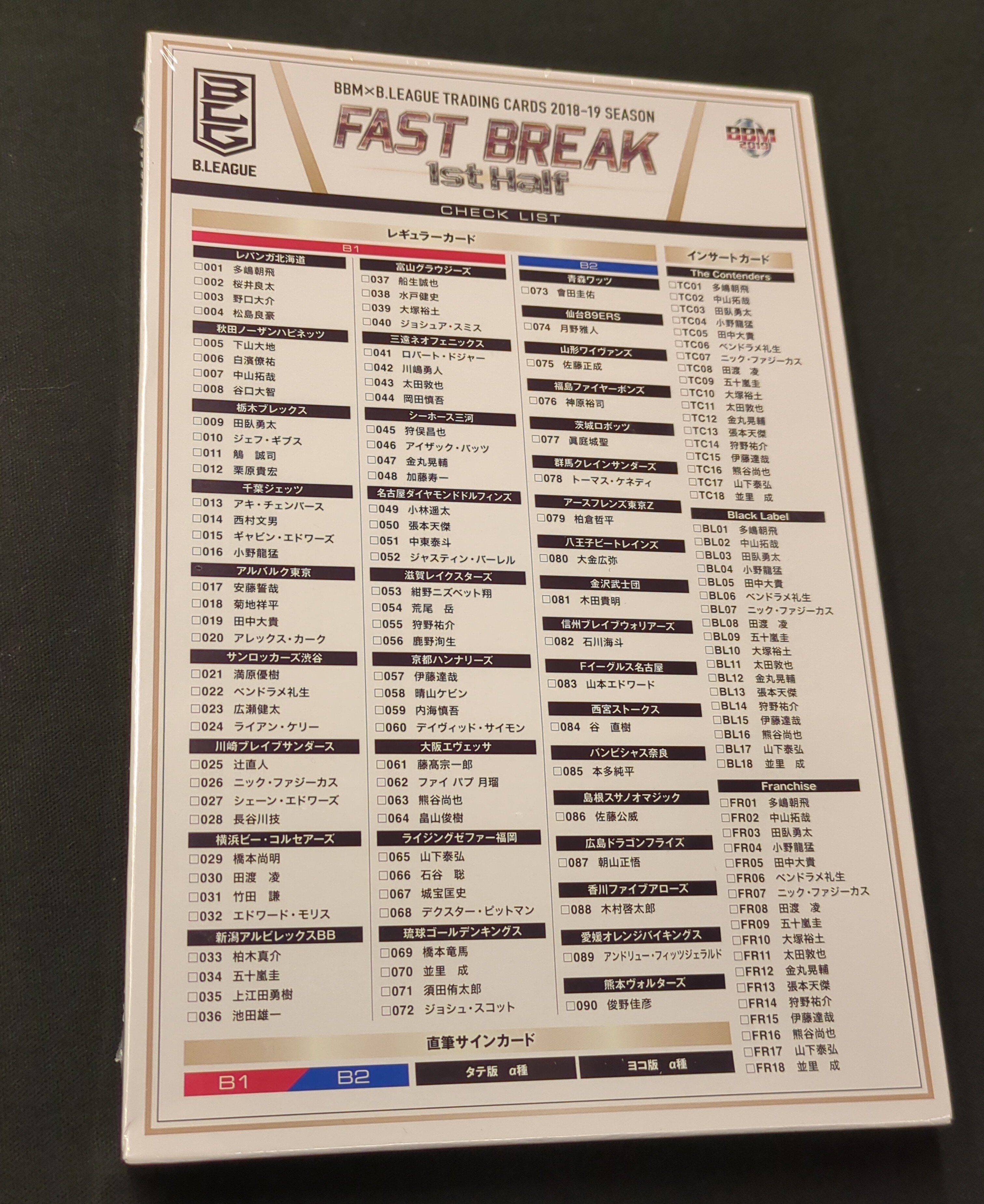 BBM B.LEAGUE トレーディングカード 2018-19 FAST BREAK 2nd Half BOX