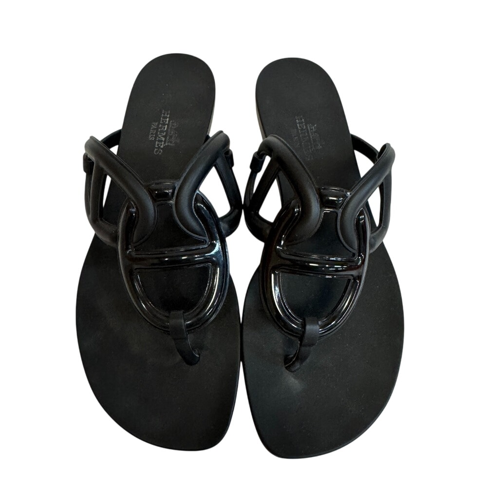 HERMES エルメス トングサンダル サンダル ブラック レディース