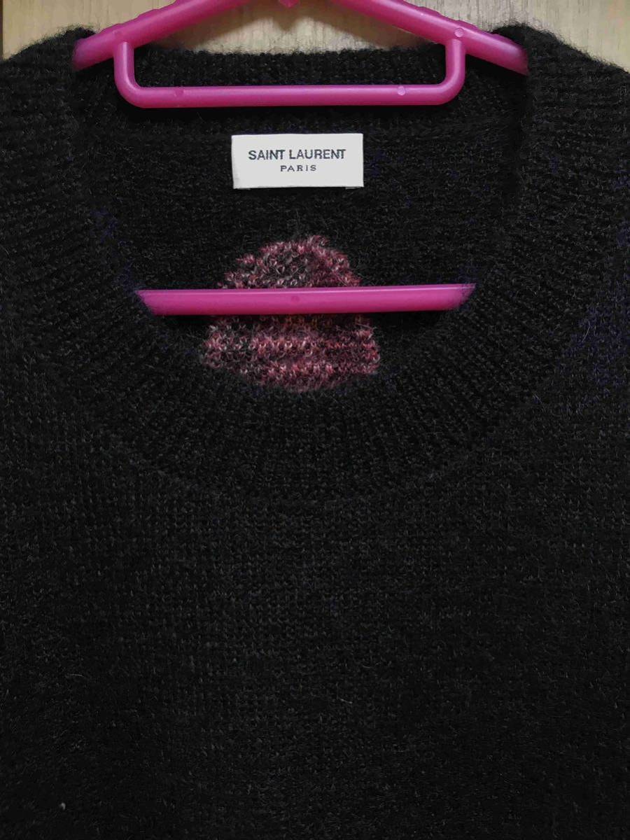 正規 18AW SAINT LAURENT PARIS サンローラン パリ Hedi Slimane エディスリマン フラミンゴ モヘヤ ニット 黒 XS