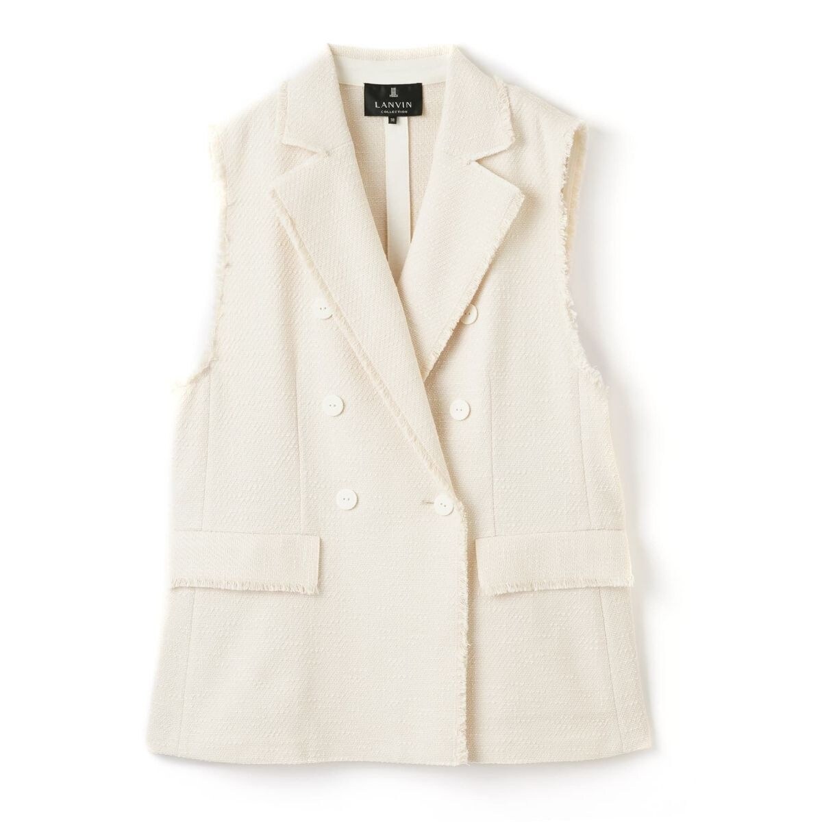 立体的な表情と上質な質感を兼ね備えたシルク混のスラブツィードで仕立てたジレ。