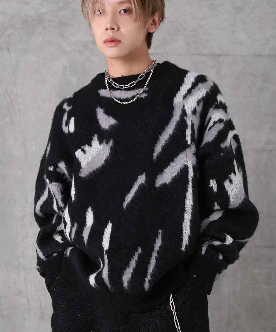 アーティスティックな総柄が主役。素材とパターンで魅せる個性派ニット。