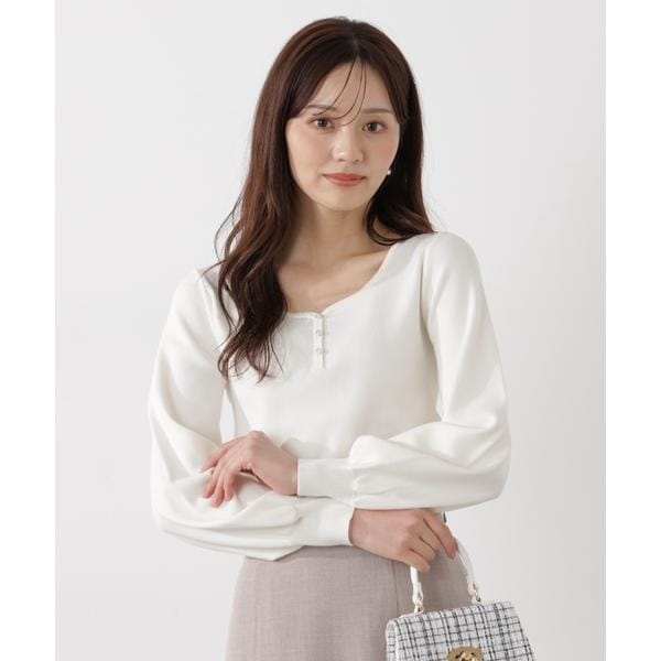 デコルテがキレイに見えるハートネックデザインの総針ニット。前ボタンがポイントで、程よいシンプルさがコーディネートしやすいです。ONにもOFFスタイルにも活躍してくれる、春にぴったりなキレイなカラーを揃えています。