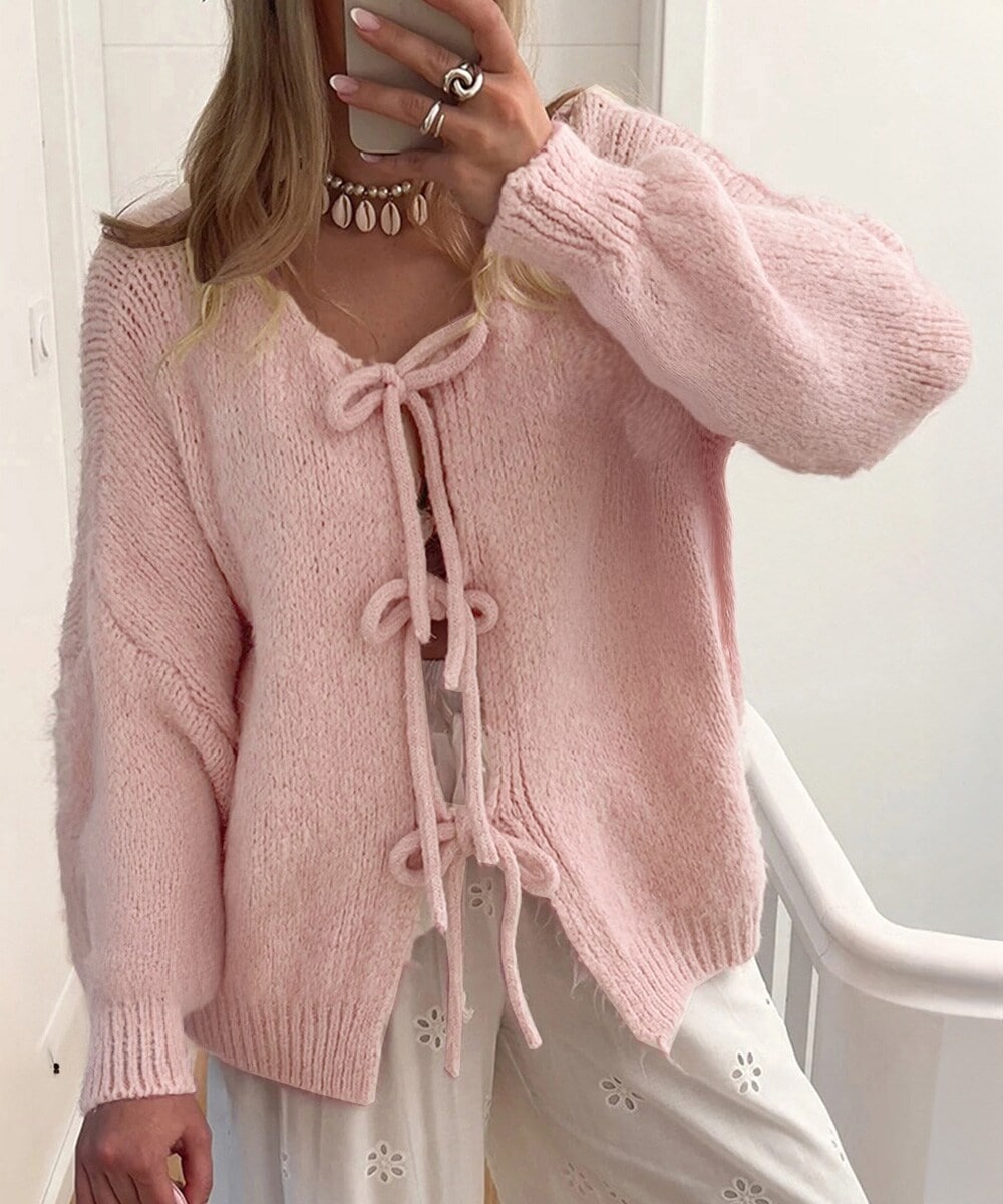 リボンをフロントにして甘めに、バックに回せば抜け感のあるスタイルに。