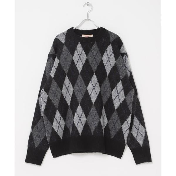 定番のアーガイル柄で仕立てたニットをモダンな印象をプラスして野暮ったくならない見た目が完成。