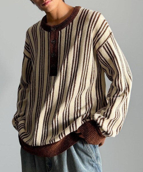【classical origin】ニュアンス柄Wジャガードシャギーニット
