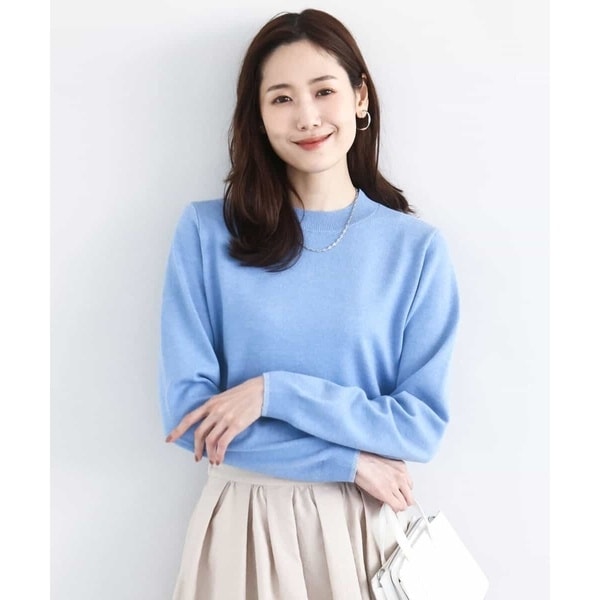 厚手すぎず薄手すぎない肉感はコートの中に羽織ってももたつかずにすっきりと着こなせます。シンプルなデザインはトレンド関係なく、またウールの入っていないニット素材で長い季節楽しめるのも嬉しい。