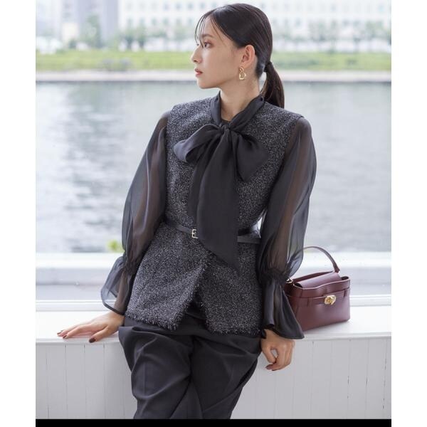 シアー素材のボリューミーなブラウス。キャミソール付なのでインナーの心配がいりません。袖はゴム入りのキャンディースリーブなので、腕まくりをして袖丈の調節ができるのも嬉しいポイント。リボンタイは、取り外しても着られる2way仕様。後ろの襟にリボンを通せるループ付きです。<素材>シアー素材を使用しています。<詳細>仕様・後ろボタン裏地・あり透け感・あり / 光沢・ややあり / 伸縮性・なし 生地の厚さ・薄手※モデルの着用画像の場合、光の当たり具合により、実際の色味と異なって見えることがございます。色味は、商品単体の画像をご参照ください。