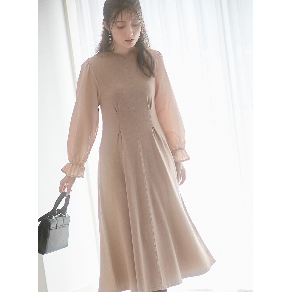 ・ブラウス素材で切り替えた袖がフェミニンなニットワンピ。