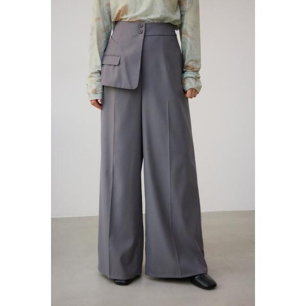 2024 Spring&Summer item ・しなやかでとろみがあり、高見えのするポリエステルレーヨンツイル素材を使用。 ・ポリエステルの丈夫さと、レーヨンの持つ上品な光沢感と手触りの良さを併せ持つ素材です。 ・今季トレンドの着こなしが叶うフラップデザインのスラックスパンツです。 ・太めに設定したウエストベルトと、スラップデザインがスタイリングのポイントとなりトレンドライクなスタイルを演出します。 ・ウエストのデザインがポイントなので、ボトムにインしていただくのがおすすめ。 ・デザインに拘った一本ですが、ゆったりとしたワイドシルエットと後ろゴムの設定でリラックスして穿けるのも嬉しいポイント。