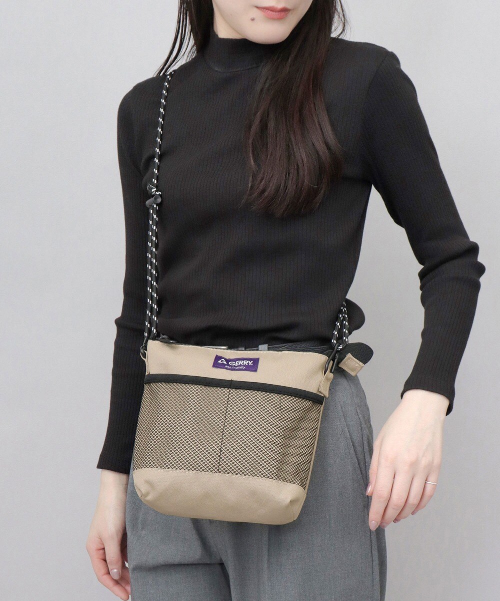 アメリカの老舗アウトドアブランド“GERRY(ジェリー)”のメッシュポケットサコッシュ。ミニウォレットやスマホ、パスケースなど、日常使う必要最低限の荷物が収納可能な、コンパクトなサイズ感が魅力。バッグ内外に配置されたポケットで、細かいアイテムもしっかり整頓して持ち運びが可能。ショルダーストラップは取り外しも出来るので、ポーチとしての使用も可能です。素材にリサイクルポリエステルを使用した、サスティナブルなアイテム。撥水加工を施しているので、急な雨や水濡れにも安心!