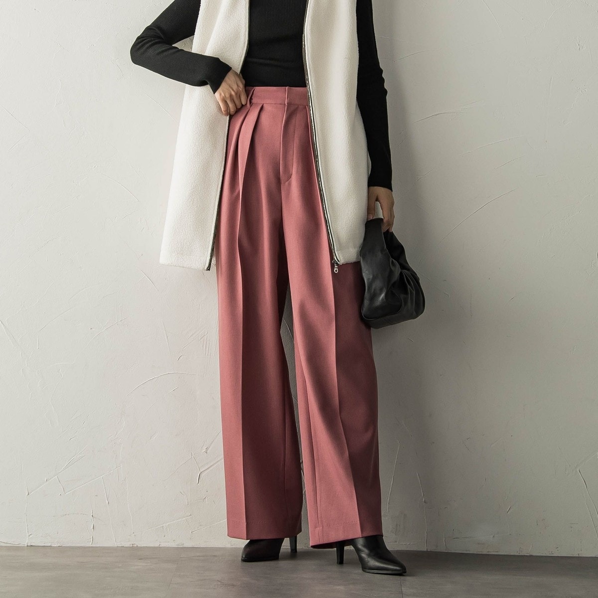 ★送料無料★洗える✨SHIPS 2タック ジョーゼット テーパード ワイドパンツ