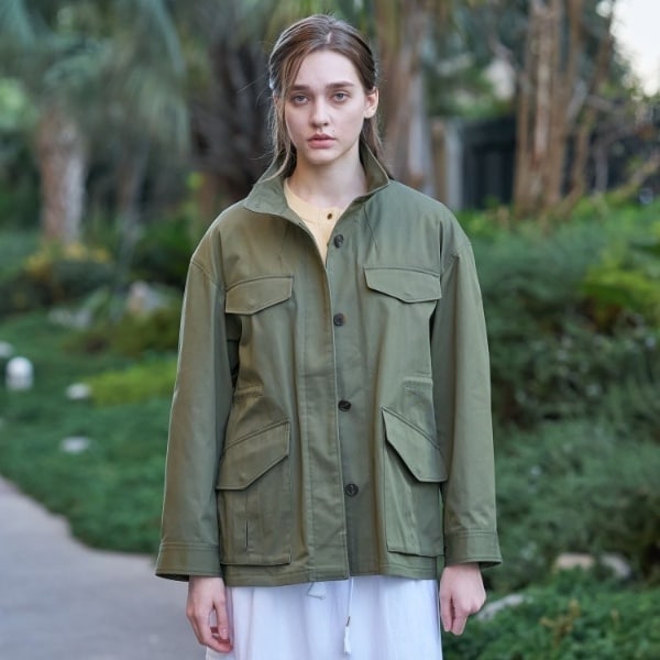 【ウォッシャブル!国産チノクロスで作る女性らしさを引き出すミリタリーブルゾン】