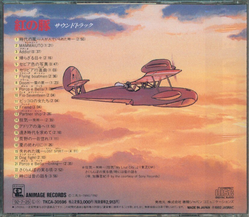 アニメCD 久石譲 紅の豚 サウンドトラック