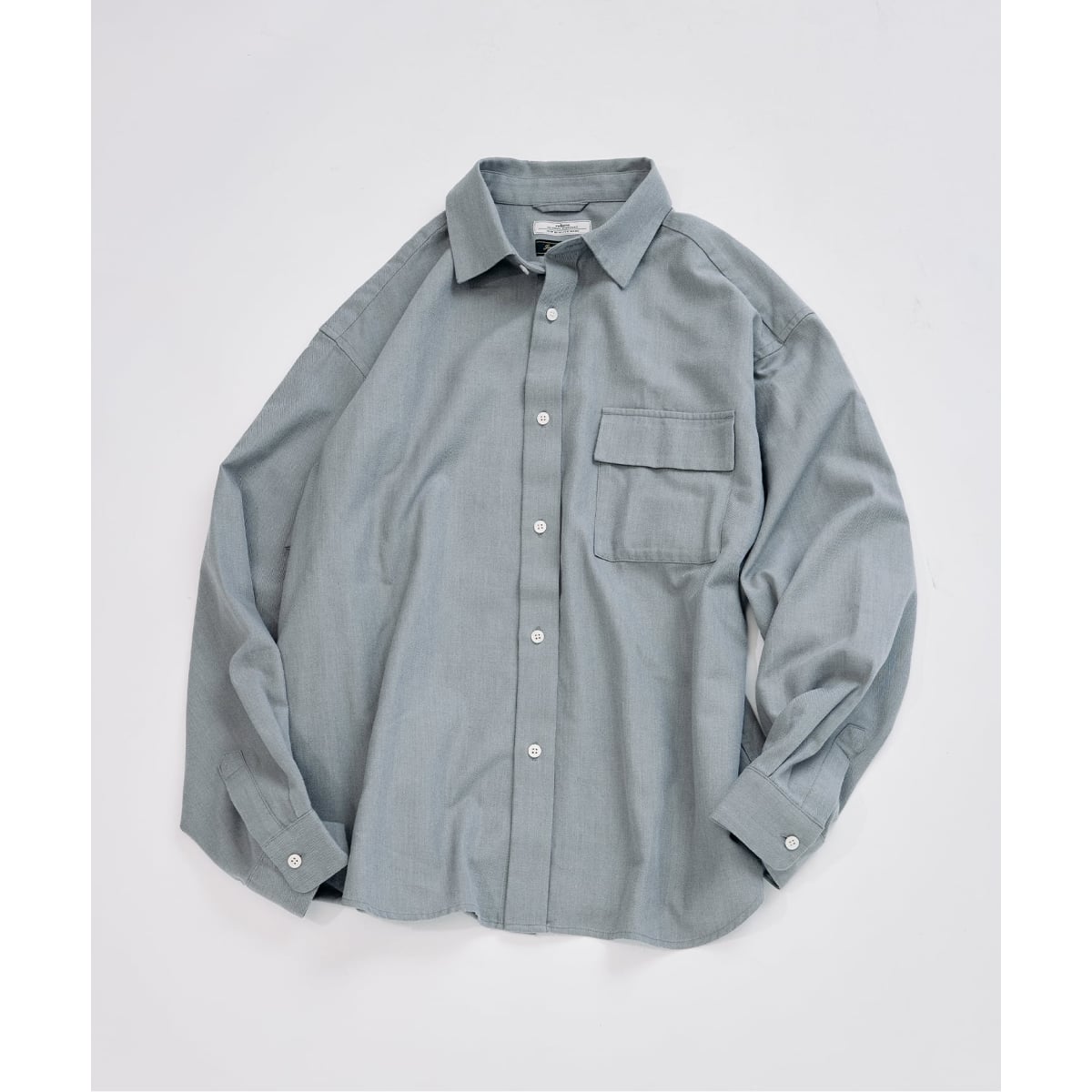 ワークシャツのような実用的なディテールでありながら、比翼仕立てのようなミニマルなデザインに落とし込むことで、カジュアルすぎない洗練された印象に仕上げています。