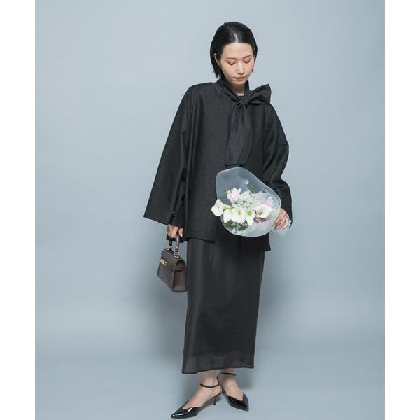 フォーマルシーンに相応しい、シルク混のオーガンジー素材を使用したワンピース。視線を惹きつける大きめタイが、顔周りに華やかさをプラスしてくれます。計算されたボリューム感は、小顔効果も叶えてくれる優秀なデザイン。一枚で着こなすのはもちろん、アウターとのレイヤードもおすすめ。テーラードやツイードジャケットの襟元からタイを外に出すスタイルは、クラシカルでありながらこなれ感の漂うフォーマルスタイルを完成させます。身長や理想の着こなしに合わせて選べる、嬉しい2サイズ展開でご用意しました。