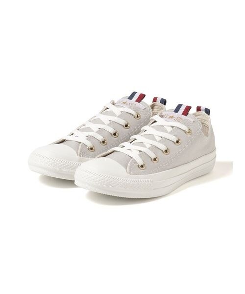 キャンバス素材のアッパーに、マリンルックで定番のトリコをタンと踵にポイントで差したデザイン。