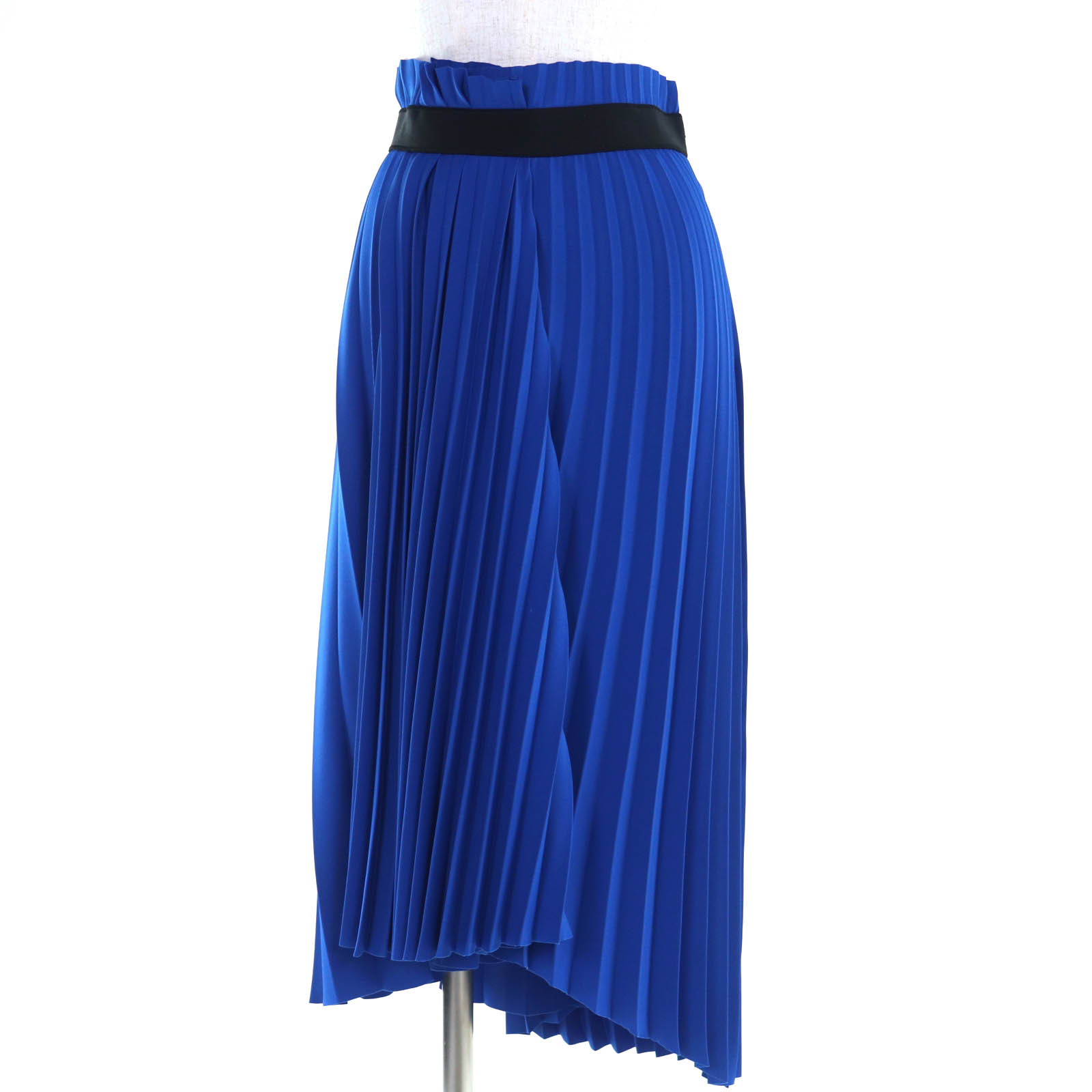 極美品▲BALENCIAGA バレンシアガ 529757 アシンメトリー プリーツ バックロゴ スカート ブラック 36 イタリア製 正規品 レディース【中古】