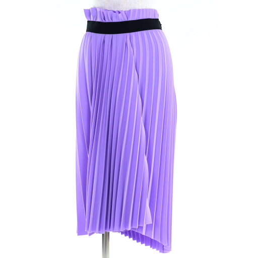 極美品◇BALENCIAGA バレンシアガ 529757 アシンメトリー バックロゴ カットオフ プリーツスカート ブルー 34 イタリア製 正規品 レディース【中古】
