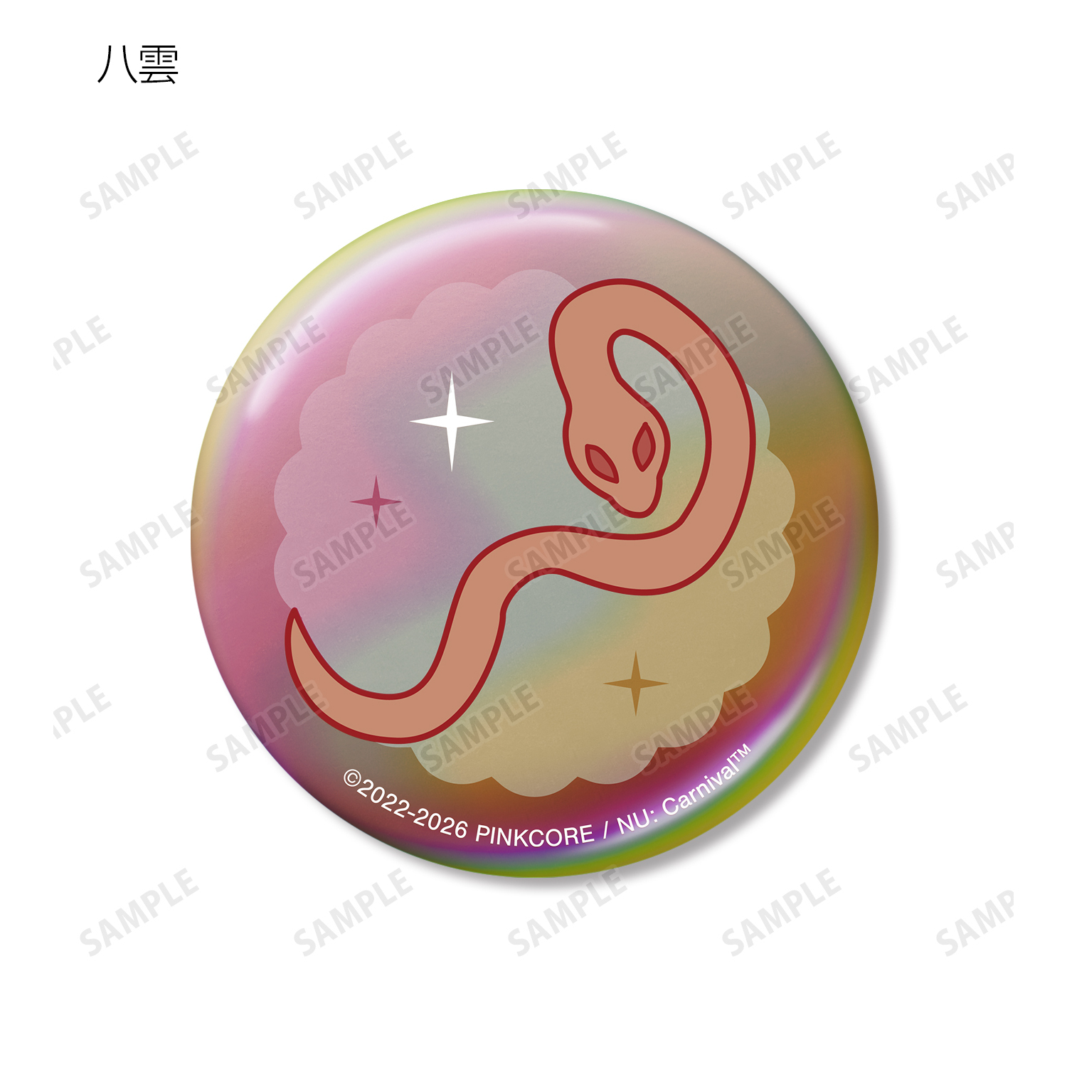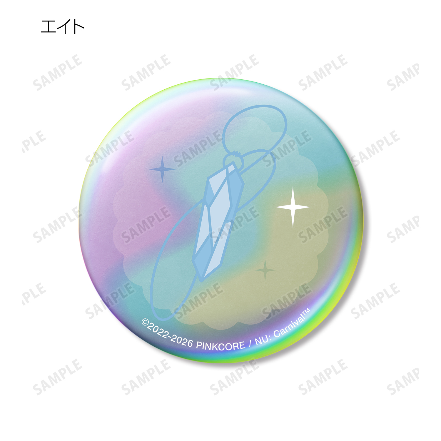 エイト、エスター、モルフィス、八雲、エドモンド、オリビン、ケシー、玖夜、ガル、ブレイド、エンテン、レイの描き起こしモチーフをオーロラ加工を施した缶バッジに仕上げました。