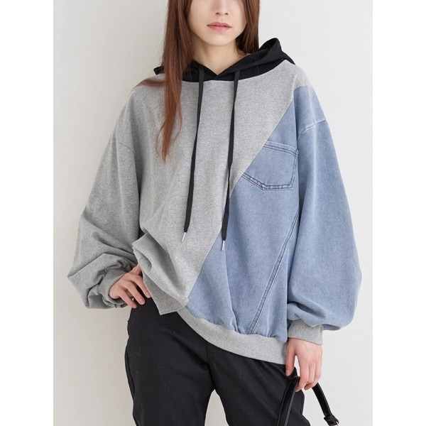 デニム×裏毛の異素材使いがこなれカジュアルを演出するパーカー