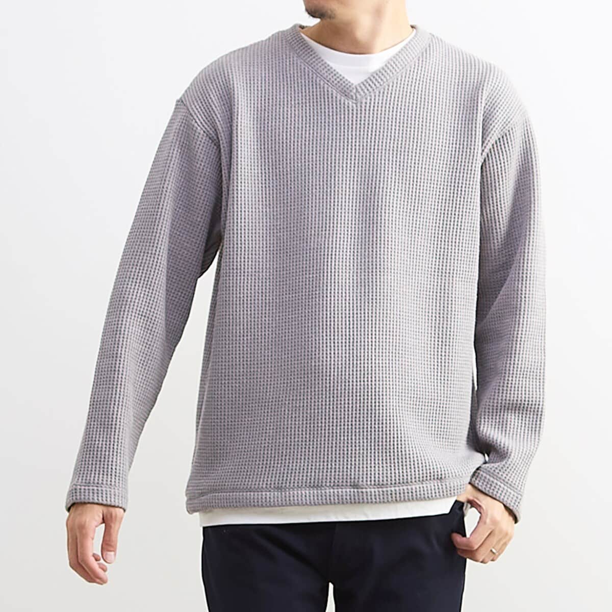 【MASTER FRAME】コットンライクワッフルクルーネックロングスリーブTシャツ