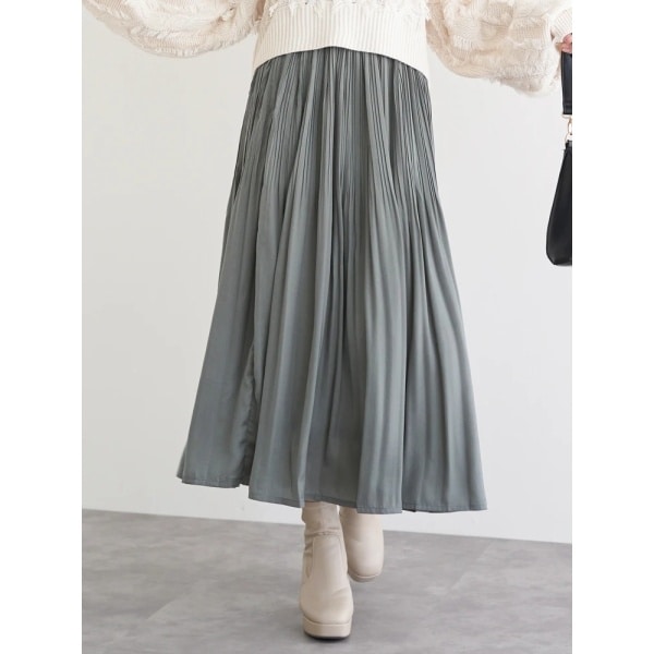 繊細な光沢をまとったサテン素材がやわらかな表情を生むロングスカート。