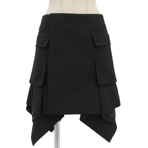 極美品☆Sacai サカイ 20-05065 ドット柄 アシンメトリー ミディ フレアスカート ブラック 0 日本製 正規品 レディース【中古】