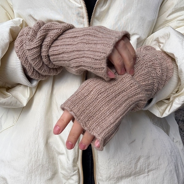手首から肘にかけて長めのデザインで冷えやすい腕をしっかり保温。
