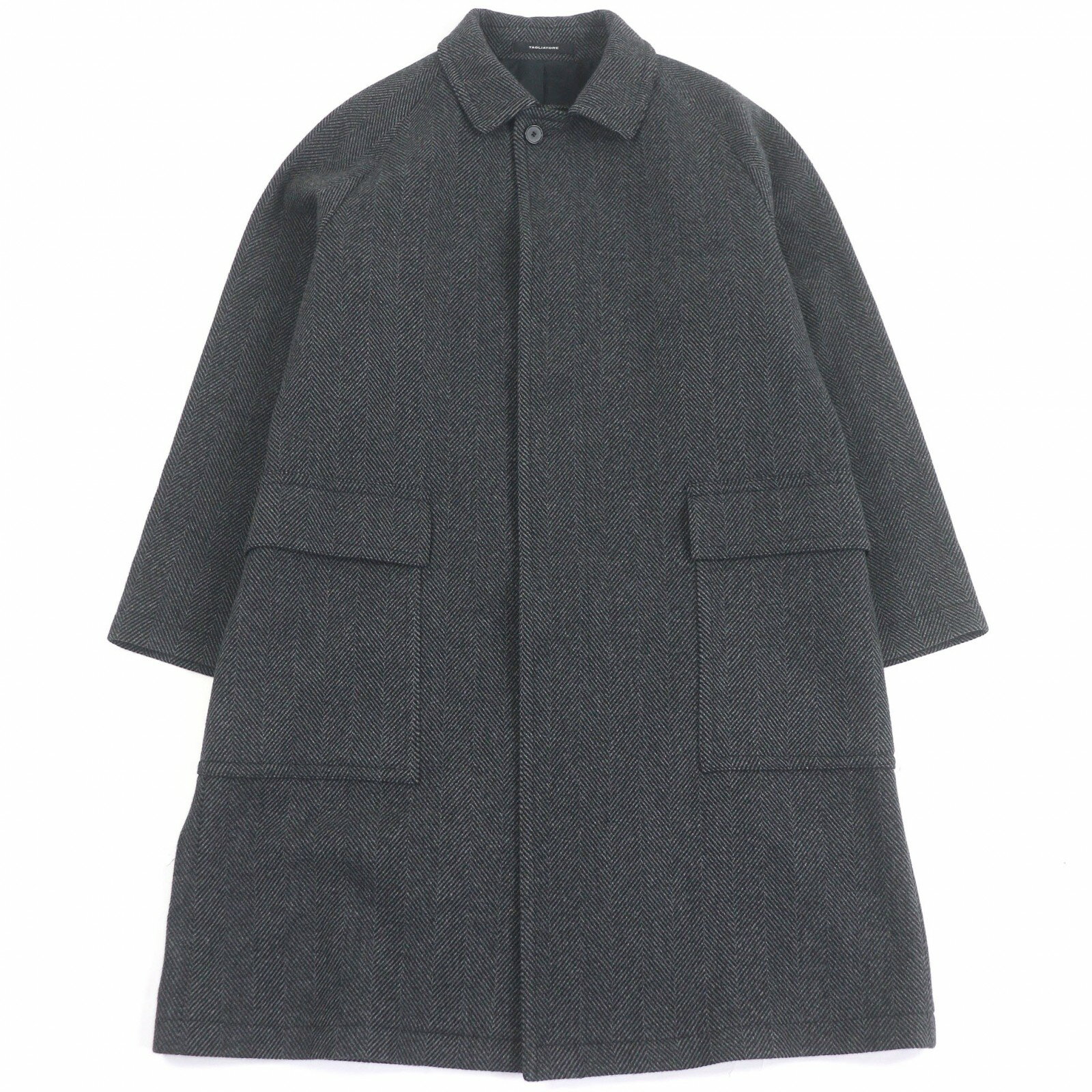 極美品○TAGLIATORE タリアトーレ SALOMON サロモン 比翼仕立て ベルテッド ラグランスリーブ バルカラーコート ブラック ホワイト ヘリンボーン柄 50 イタリア製 正規品 メンズ【中古】
