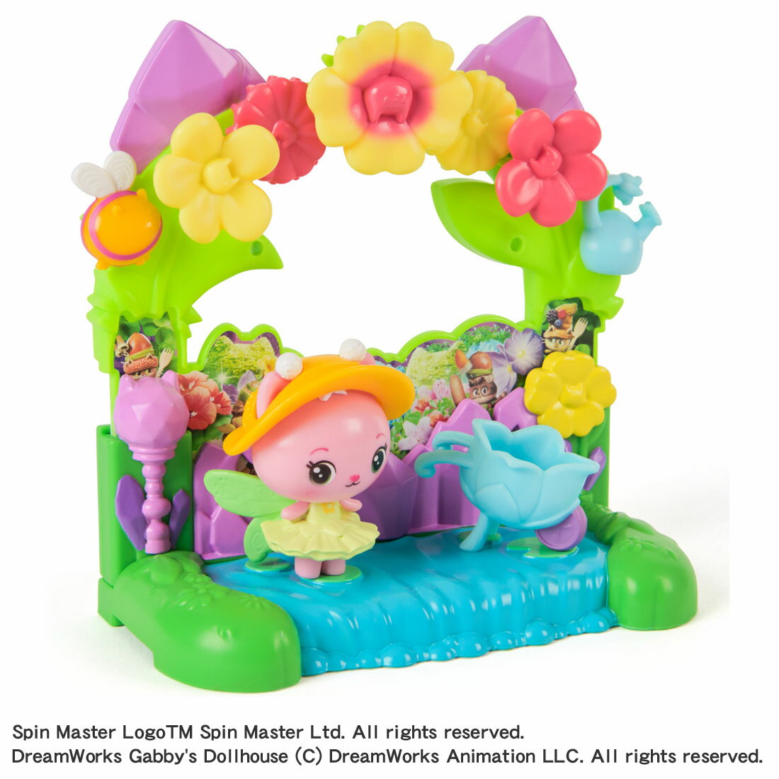 大人気アニメシリーズ「ギャビーのドールハウス」がニャンと初の映画化!『ギャビーのドールハウス ザ・ムービー』の劇中シーンを再現したおにわのバルコニーとキティ・フェアリーのフィギュア、小物が付いたプレイセットです。『ギャビーのドールハウス ザ・ムービー』の劇中シーンを再現したおにわのバルコニーとキティ・フェアリーのフィギュア、小物が付いたプレイセットです。バルコニーのお花をくるくる回したり、小物を飾ったりできるよ。バルコニーは別売りの「大きなネコちゃんハウス」の窓枠に取り付けることができます。【対象年齢】:3才〜