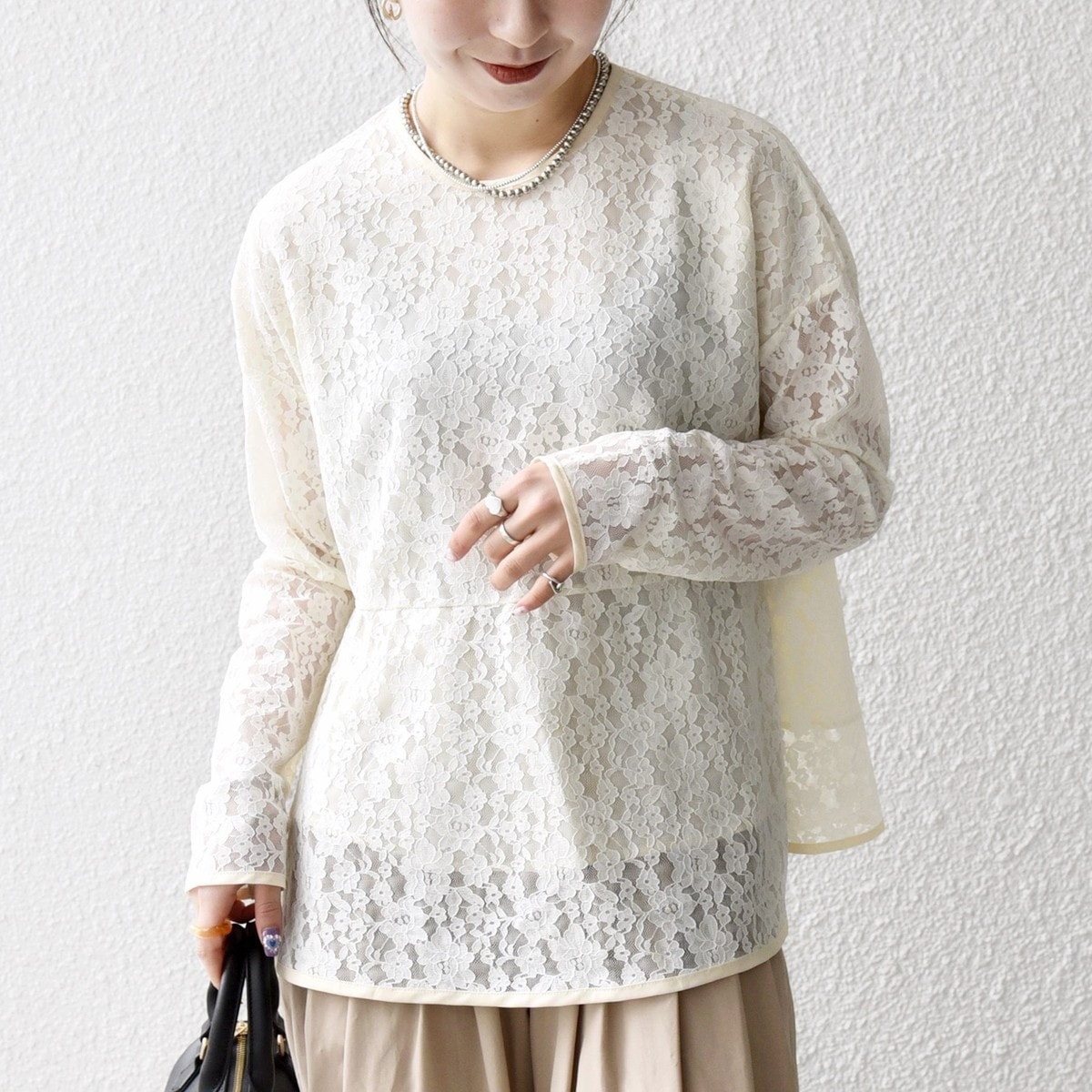 ジャケットや薄手ニットに重ねて、レースをさりげなくのぞかせるのもおすすめです。