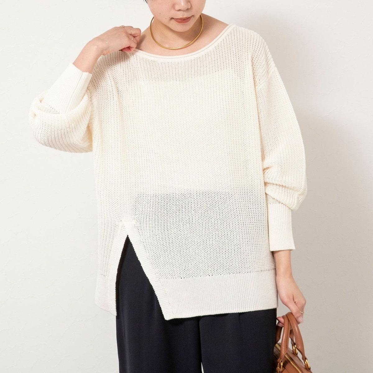 畦編配色レイヤードプルオーバー グレー