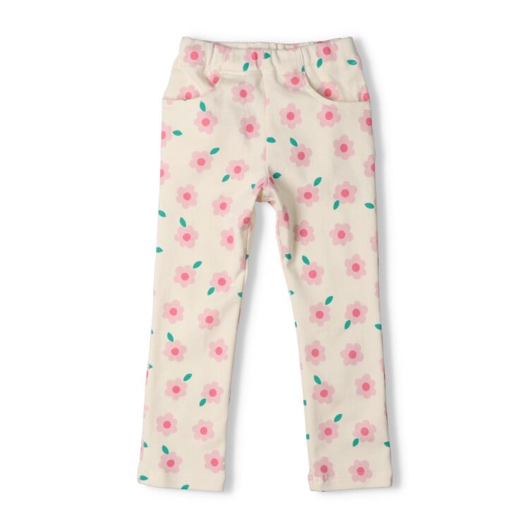 柔らかく、伸縮性のあるフライス素材で履きやすく、履かせやすい!動きやすいのでデイリー使いにピッタリ!春らしいお花の総柄の長パンツ、長ズボン。【アイテム】ナチュラル シンプル ベーシック フェミニン ガーリー 無地 カジュアル お洒落 オシャレ かわいい 大人可愛い 普段着 デイリーウェア お出かけ着 お外着 外遊び着 ロング丈 長丈 長ズボン フル丈 ボトムス 子ども こども 女児 女の子 ガールズ キッズ ベビーサイズ トドラーサイズ 幼稚園 保育園 小学校 通園 通学 小学生 2026年春物新作 丸高衣料 フラワー ムージョンジョン オフホワイト 白色 イエロー 黄色