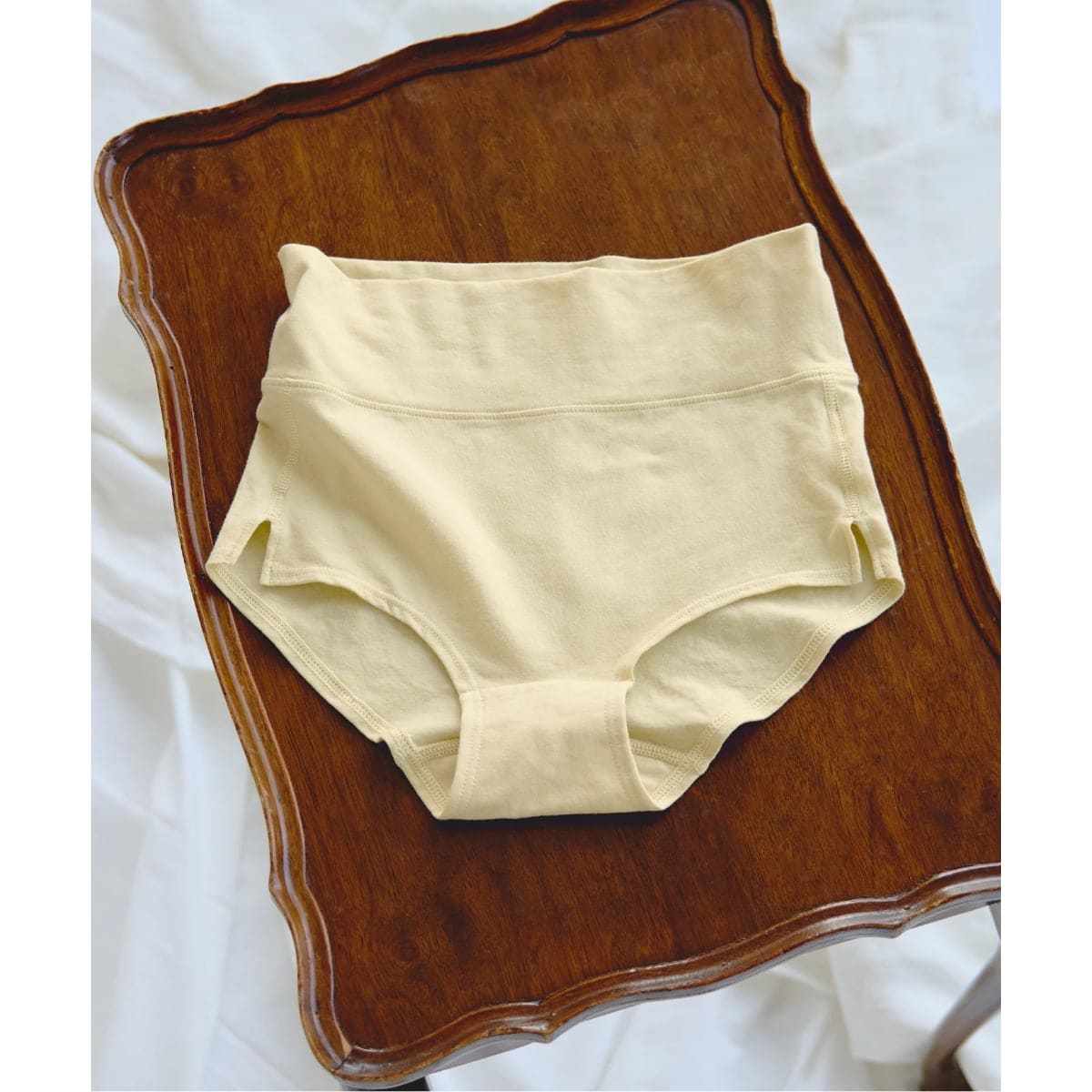 着用感:おなかの部分が生地2重になっているので冷えが気になる時にぴったり。足口サイドにはスリットがあり、鼠径部の締め付けを軽減します。