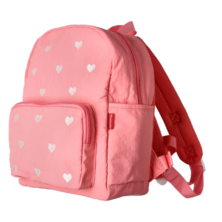 ホワイトはお花、レッドは動物とロゴ、ピンクはハート、ネイビーは車の刺繍入り。使いやすく合わせやすいので、ギフトやプレゼントにもオススメのリュック。表生地を撥水加工しています。【アイテム】雑貨 カジュアル お洒落 オシャレ かっこいい かわいい 可愛い 普段着 デイリーウェア お出かけ 子ども こども 男児 男の子 ボーイズ キッズ ベビーサイズ トドラーサイズ 幼稚園 保育園 小学校 通園 通学 小学生 遠足 旅行 2026年春夏新作 丸高衣料 小物 女児 女の子 ガールズ キッズフォーレ バックパック 白色 フラワー 赤色 アニマル 動物 紺色 カー