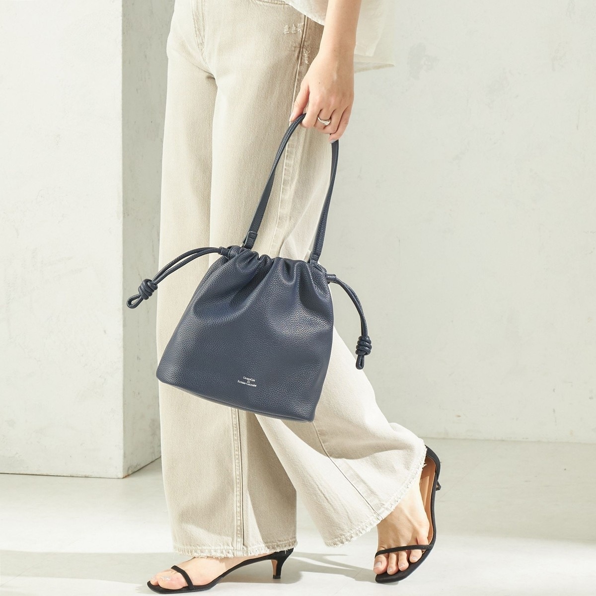 ころんとしたフォルムが大人かわいいシンプルなドローストリング巾着バッグ。