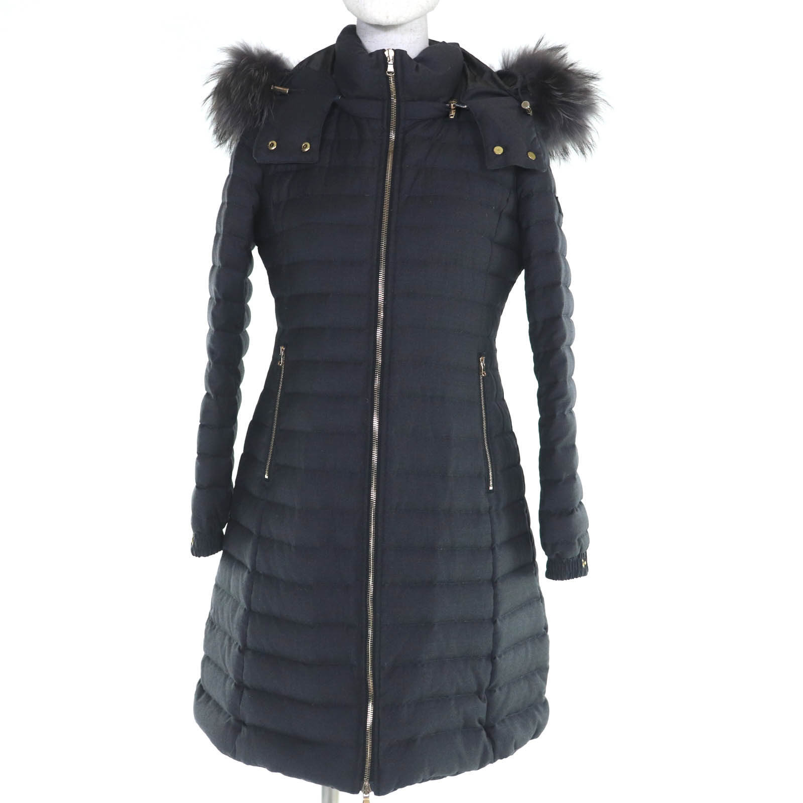 美品☆TATRAS タトラス 22AW LTSE22A4399-D PALMA ラクーンファー・フード・ベルト付 キルティングダウンコート ブラック 03 正規品 レディース【中古】